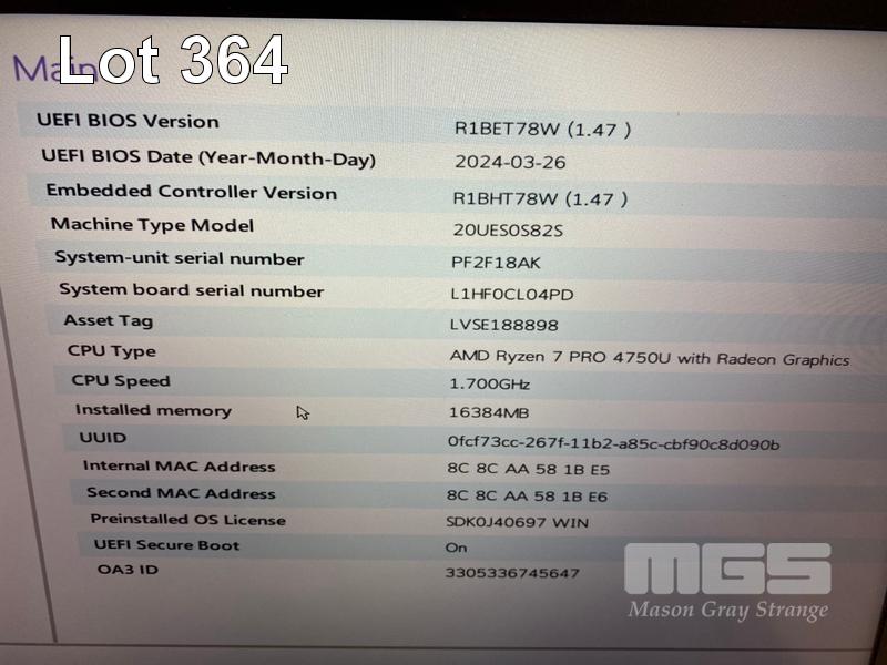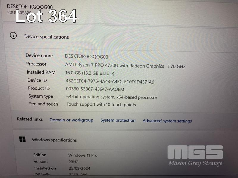 LAPTOP, LENOVO THINKPAD T14 Gen1, TYPE 20UE, AMD RYZEN 7 PRO 4750U @ 1.7GHz, 16GB DDR4 RAM, 512GB NVMe M.2 SSD, 14" TOUCHSCREEN (1920x1080), Wi-Fi, BLUETOOTH, WINDOWS 11 PRO INSTALLED (NO USB-C POWER SUPPLY) (NOTE: MARKS ON SCREEN) S/N:PF2F18AK
