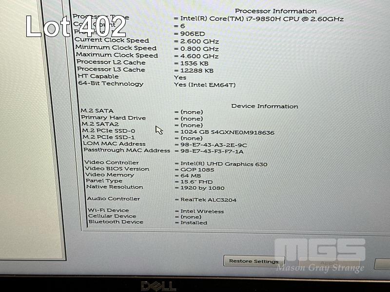 LAPTOP, DELL LATITUDE 5501, CORE i7 9850H (9TH GEN) @ 2.6GHz, 32GB DDR4 RAM, 1TB NVMe M.2 SSD, 15.6" WIDESCREEN (1920x1080), INTEL UHD GRAPHICS 630, Wi-Fi, BLUETOOTH, WINDOWS 11 PRO INSTALLED & POWER SUPPLY