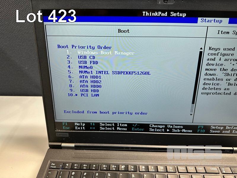 LAPTOP, LENOVO THINKPAD P52 MOBILE WORKSTATION, TYPE 20MA, CORE i7 8850H (8TH GEN) @ 2.6GHz, 32GB DDR4 RAM, 512GB NVMe M.2 SSD, 15.6" WIDESCREEN (1920x1080), 4GB NVIDIA QUADRO P2000 VIDEO, Wi-Fi, BLUETOOTH, WINDOWS 11 PRO INSTALLED & POWER SUPPLY (NOTE: MINOR MARKS ON SCREEN) S/N:PF1RWVL4