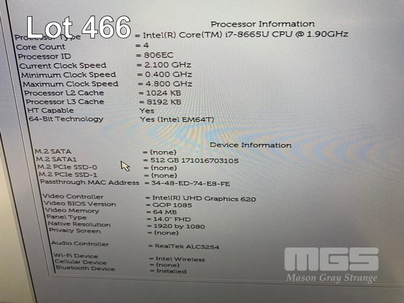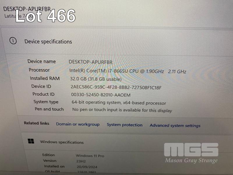 LAPTOP, DELL LATITUDE 7400, CORE i7 8665U (8TH GEN) @ 1.9GHz, 32GB DDR4 RAM, 512GB NVMe M.2 SSD, 14" WIDESCREEN (1920x1080), INTEL UHD GRAPHICS 620, Wi-Fi, BLUETOOTH, WINDOWS 11 PRO INSTALLED & POWER SUPPLY (NOTE: MINOR MARKS ON SCREEN) S/N:25Y83Z2