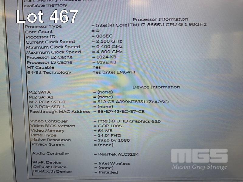 LAPTOP, DELL LATITUDE 7400, CORE i7 8665U (8TH GEN) @ 1.9GHz, 8GB DDR4 RAM, 512GB NVMe M.2 SSD, 14" WIDESCREEN (1920x1080), INTEL UHD GRAPHICS 620, Wi-Fi, BLUETOOTH, WINDOWS 11 HOME INSTALLED & POWER SUPPLY (NOTE: MINOR MARKS ON SCREEN) S/N:1TRYYY2