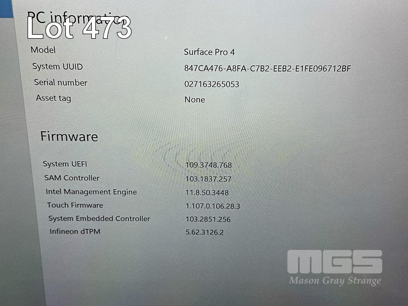 TABLET PC, MICROSOFT SURFACE PRO 4, MODEL 1724, CORE i7 6650U (6TH GEN) @ 2.2GHz, 16GB RAM, 512GB SSD, 12.3" TOUCHSCREEN (2736x1824), INTEL HD GRAPHICS 520, Wi-Fi, BLUETOOTH, WINDOWS 10 PRO INSTALLED, STYLUS, KEYBOARD TYPE COVER & POWER SUPPLY S/N:027163265053