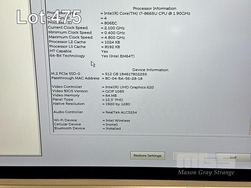 TABLET PC, DELL LATITUDE 7200 2-in-1, CORE i7 8665U (8TH GEN) @ 1.9GHz, 16GB DDR3 RAM, 512GB NVMe M.2 SSD, 12.3" TOUCHSCREEN (1920x1080), INTEL UHD GRAPHICS, Wi-Fi, BLUETOOTH, WINDOWS 11 PRO INSTALLED, KEYBOARD (NO USB-C POWER SUPPLY) (NOTE: MINOR MARKS ON SCREEN) S/N:BFNP0X2
