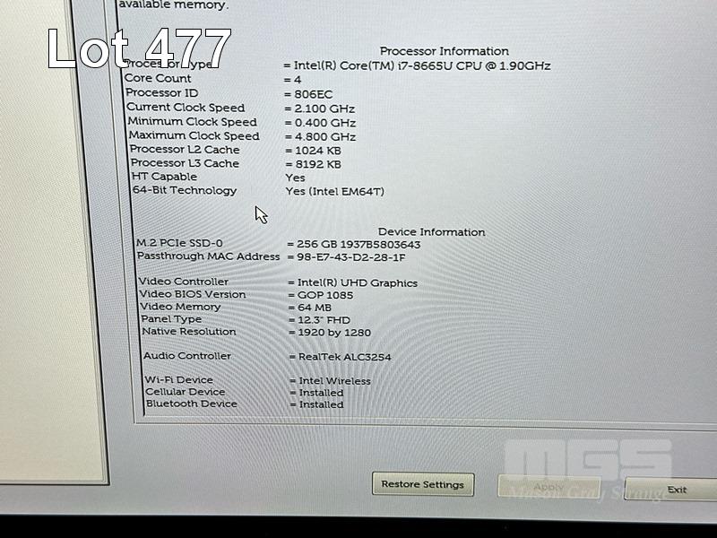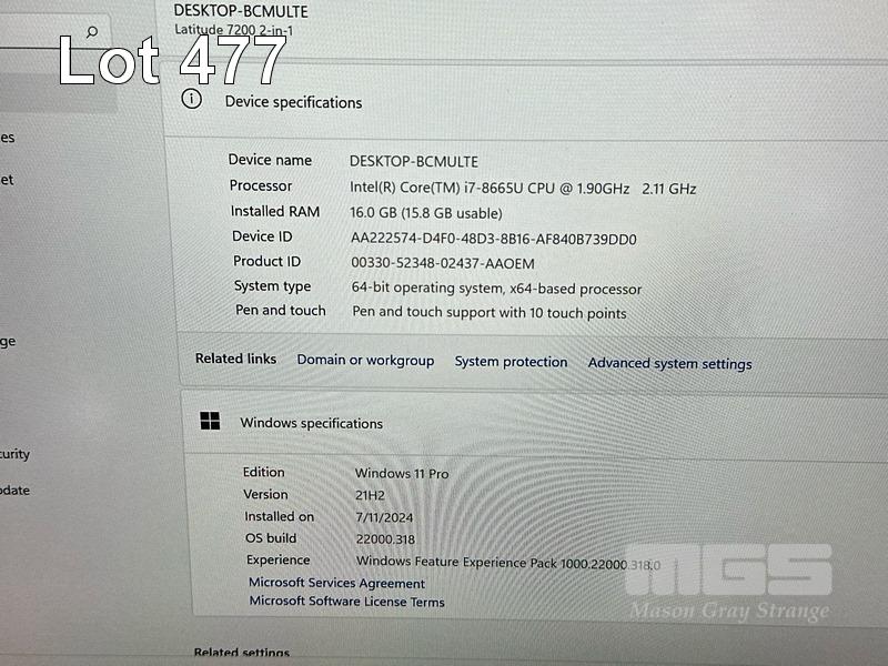 TABLET PC, DELL LATITUDE 7200 2-in-1, CORE i7 8665U (8TH GEN) @ 1.9GHz, 16GB DDR3 RAM, 256GB NVMe M.2 SSD, 12.3" TOUCHSCREEN (1920x1080), INTEL UHD GRAPHICS, Wi-Fi, CELLULAR, BLUETOOTH, WINDOWS 11 PRO INSTALLED, KEYBOARD (NO USB-C POWER SUPPLY) (NOTE: BATTERY NOT HOLDING CHARGE, MINOR MARKS ON SCREEN) S/N:83DFZY2