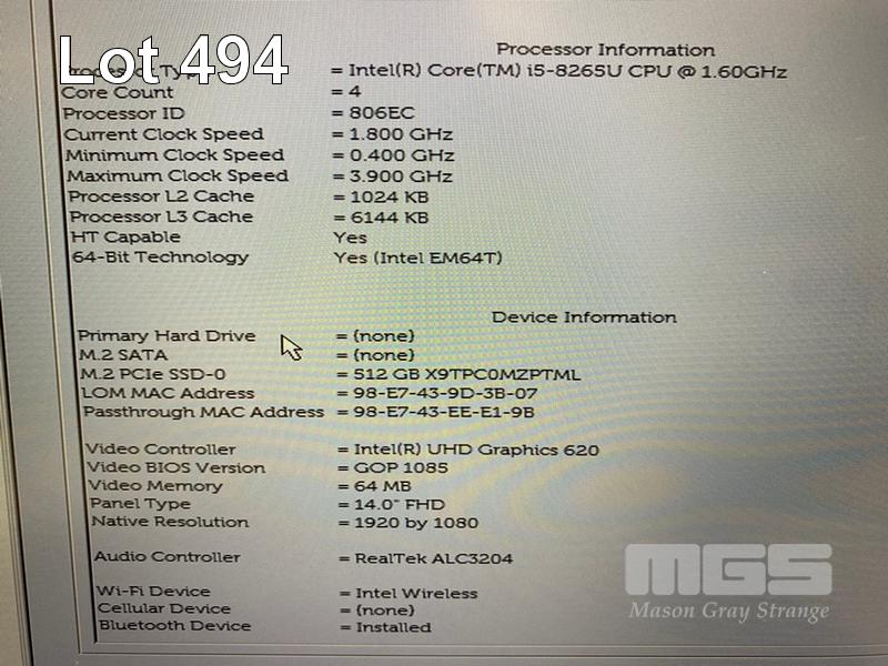 LAPTOP, DELL LATITUDE 5400, CORE i5 8265U (8TH GEN) @ 1.6GHz, 8GB DDR4 RAM, 512GB NVMe M.2 SSD, 14" WIDESCREEN (1920x1080), INTEL UHD GRAPHICS 620, Wi-Fi, BLUETOOTH, WINDOWS 11 HOME INSTALLED & POWER SUPPLY (NOTE: MINOR MARKS ON SCREEN) S/N:57SGYY2