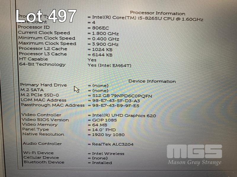 LAPTOP, DELL LATITUDE 5400, CORE i5 8265U (8TH GEN) @ 1.6GHz, 8GB DDR4 RAM, 512GB NVMe M.2 SSD, 14" WIDESCREEN (1920x1080), INTEL UHD GRAPHICS 620, Wi-Fi, BLUETOOTH, WINDOWS 11 HOME INSTALLED & POWER SUPPLY (NOTE: MARKS ON SCREEN) S/N:6TG32Z2