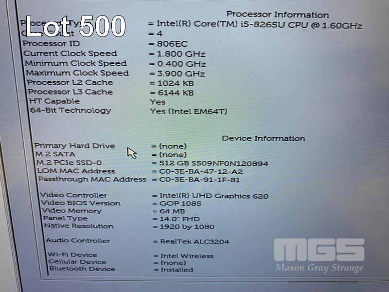 LAPTOP, DELL LATITUDE 5400, CORE i5 8265U (8TH GEN) @ 1.6GHz, 8GB DDR4 RAM, 512GB NVMe M.2 SSD, 14" WIDESCREEN (1920x1080), INTEL UHD GRAPHICS 620, Wi-Fi, BLUETOOTH, WINDOWS 11 HOME INSTALLED & POWER SUPPLY (NOTE: MARKS ON SCREEN) S/N:7K5VL33