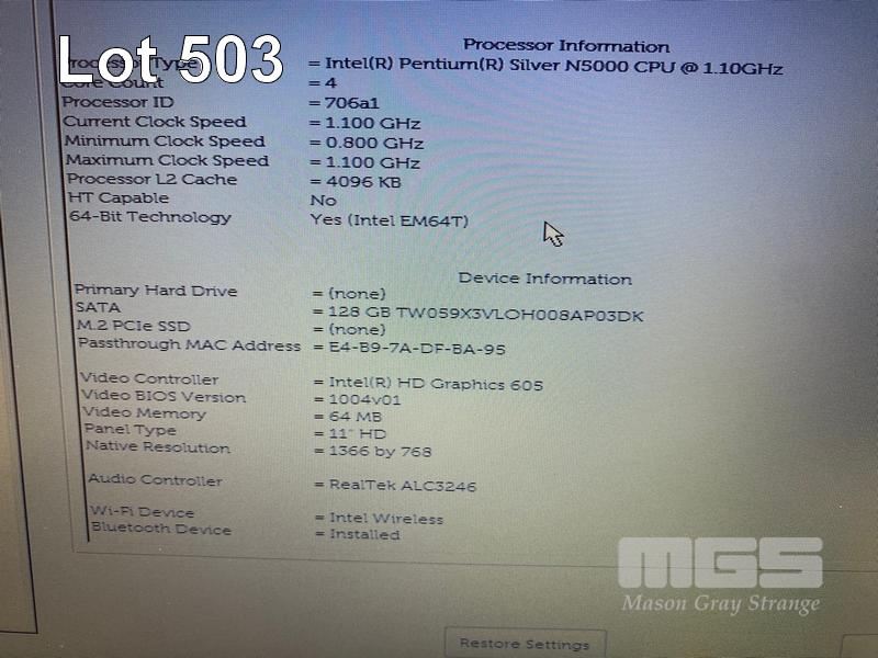 LAPTOP, DELL LATITUDE 3190, PENTIUM SILVER N5000 @ 1.1GHz, 4GB DDR4 RAM, 128GB M.2 SSD, 11.6" WIDESCREEN (1366x768), INTEL UHD GRAPHICS 605, Wi-Fi, BLUETOOTH, WINDOWS 11 PRO EDUCATION INSTALLED & POWER SUPPLY S/N:4NH76S2