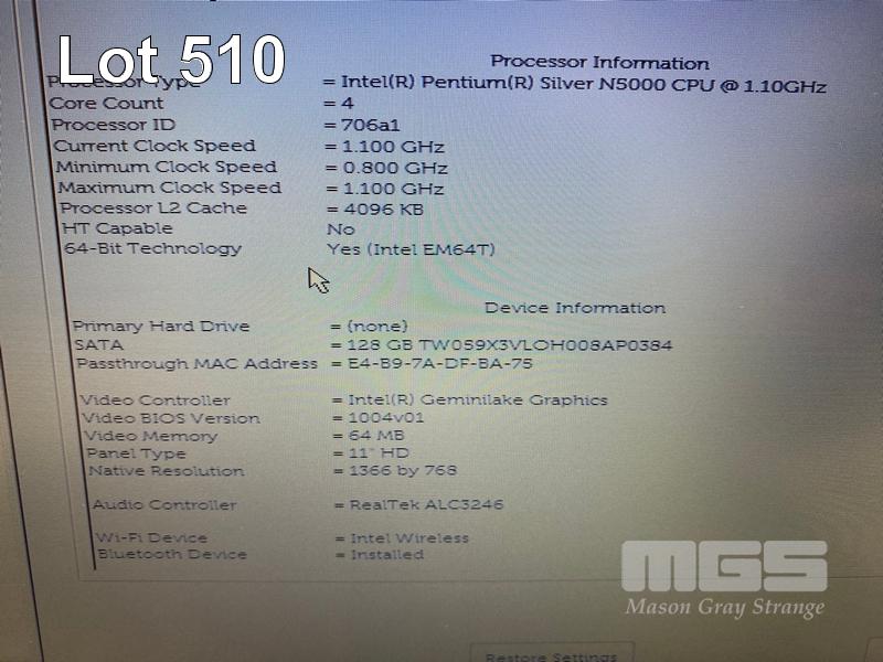 LAPTOP, DELL LATITUDE 3190, PENTIUM SILVER N5000 @ 1.1GHz, 4GB DDR4 RAM, 128GB M.2 SSD, 11.6" WIDESCREEN (1366x768), INTEL UHD GRAPHICS 605, Wi-Fi, BLUETOOTH, WINDOWS 11 PRO EDUCATION INSTALLED & POWER SUPPLY S/N:9VJ76S2