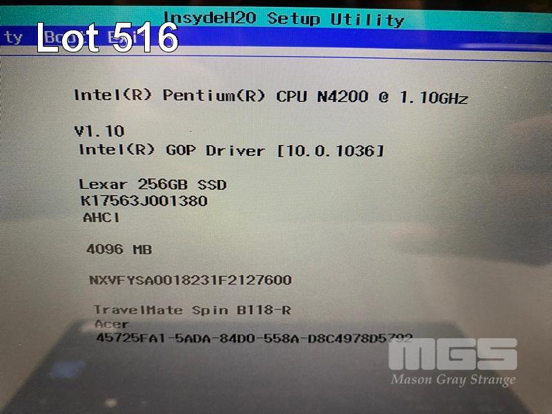 LAPTOP, ACER TRAVELMATE SPIN B118-R, PENTIUM N4200 @ 1.1GHz, 4GB RAM, 256GB M.2 SSD, 11.6" TOUCHSCREEN (1366x768), Wi-Fi, BLUETOOTH, WINDOWS 11 PRO EDUCATION INSTALLED & POWER SUPPLY (NOTE: SMALL BUBBLE MARK ON SCREEN) S/N:NXVFYSA0018231F2127600