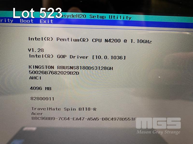 LAPTOP, ACER TRAVELMATE SPIN B118-R, PENTIUM N4200 @ 1.1GHz, 4GB RAM, 128GB M.2 SSD, 11.6" TOUCHSCREEN (1366x768), Wi-Fi, BLUETOOTH, WINDOWS 11 PRO EDUCATION INSTALLED & POWER SUPPLY (NOTE: BUBBLE MARKS ON SCREEN) S/N:82800911