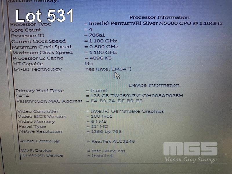 LAPTOP, DELL LATITUDE 3190, PENTIUM SILVER N5000 @ 1.1GHz, 4GB DDR4 RAM, 128GB M.2 SSD, 11.6" WIDESCREEN (1366x768), INTEL UHD GRAPHICS 605, Wi-Fi, BLUETOOTH, WINDOWS 11 PRO EDUCATION INSTALLED & POWER SUPPLY S/N:4RF76S2
