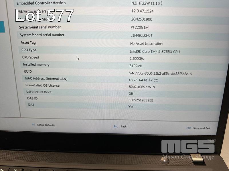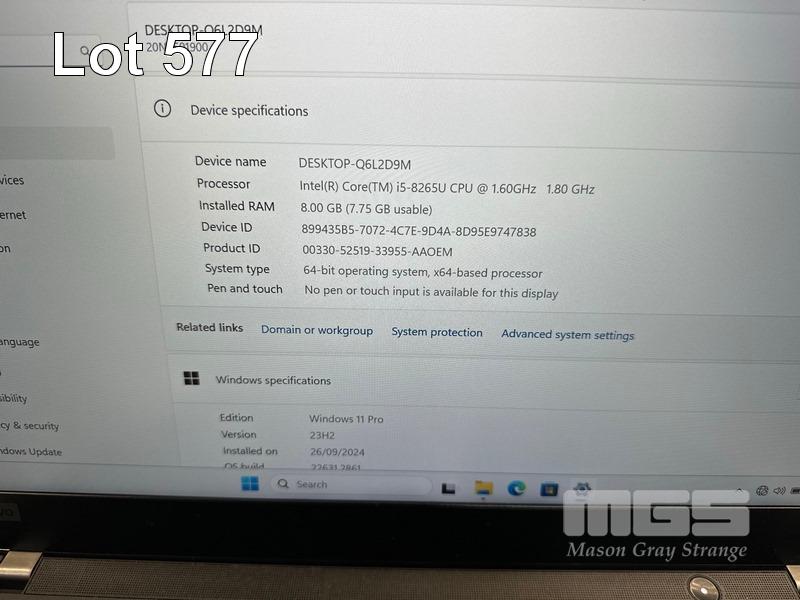 LAPTOP, LENOVO THINKPAD T490, TYPE 20N2, CORE i5 8265U (8TH GEN) @ 1.6GHz, 8GB DDR4 RAM, 256GB NVMe M.2 SSD, 14" WIDESCREEN (1920x1080), INTEL HD VIDEO, Wi-Fi, BLUETOOTH, WINDOWS 11 PRO INSTALLED (NO USB-C POWER SUPPLY) (NOTE: MINOR MARKS ON SCREEN) S/N:PF220G1M