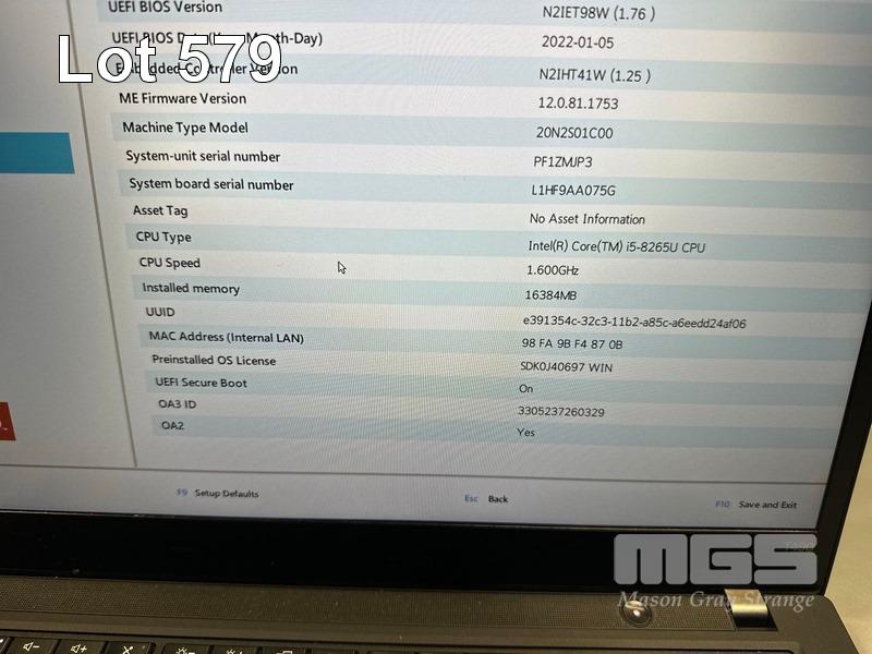 LAPTOP, LENOVO THINKPAD T490, TYPE 20N2, CORE i5 8265U (8TH GEN) @ 1.6GHz, 16GB DDR4 RAM, 512GB NVMe M.2 SSD, 14" WIDESCREEN (1920x1080), INTEL HD VIDEO, Wi-Fi, BLUETOOTH, WINDOWS 11 PRO INSTALLED (NO USB-C POWER SUPPLY) (NOTE: MARKS ON SCREEN) S/N:PF1ZMJP3