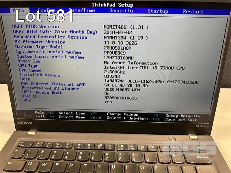 LAPTOP, LENOVO THINKPAD X1 CARBON, TYPE 20HQ, CORE i5 7300U (7TH GEN) @ 2.6GHz, 8GB DDR3 RAM, 256GB NVMe M.2 SSD, 14" WIDESCREEN (1920x1080), INTEL HD VIDEO, Wi-Fi, BLUETOOTH, WINDOWS 10 PRO INSTALLED & USB-C POWER SUPPLY (NOTE: MINOR MARKS ON SCREEN) S/N:PF0VE8C9