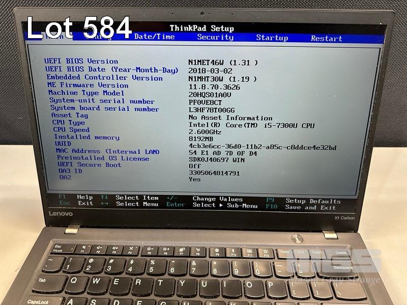 LAPTOP, LENOVO THINKPAD X1 CARBON, TYPE 20HQ, CORE i5 7300U (7TH GEN) @ 2.6GHz, 8GB DDR3 RAM, 256GB NVMe M.2 SSD, 14" WIDESCREEN (1920x1080), INTEL HD VIDEO, Wi-Fi, BLUETOOTH, WINDOWS 10 PRO INSTALLED & USB-C POWER SUPPLY (NOTE: CASING WORN, MINOR MARKS ON SCREEN) S/N:PF0VE8CT