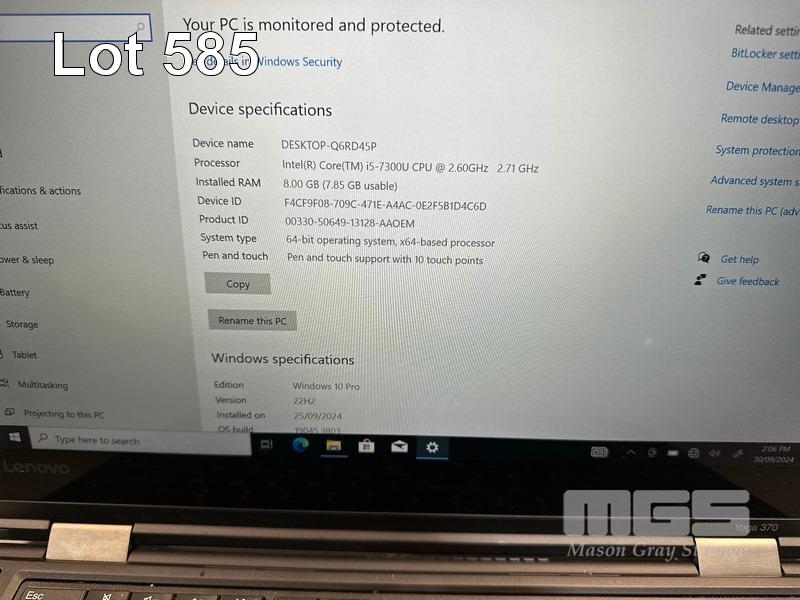 LAPTOP, LENOVO THINKPAD YOGA 370, TYPE 20JJ, CORE i5 7300U (7TH GEN) @ 2.6GHz, 8GB DDR4 RAM, 256GB NVMe M.2 SSD, 13.3" TOUCHSCREEN (1920x1080), INTEL HD VIDEO, Wi-Fi, BLUETOOTH, WINDOWS 10 PRO INSTALLED & POWER SUPPLY (NOTE: MINOR MARKS & SPOTS ON SCREEN) S/N:MP19V7EY