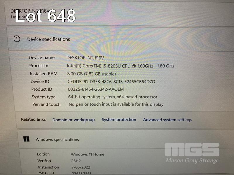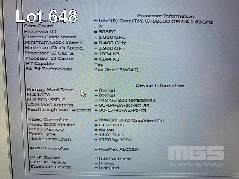 LAPTOP, DELL LATITUDE 5400, CORE i5 8265U (8TH GEN) @ 1.6GHz, 8GB DDR4 RAM, 512GB NVMe M.2 SSD, 14" WIDESCREEN (1920x1080), INTEL UHD GRAPHICS 620, Wi-Fi, BLUETOOTH, WINDOWS 11 HOME INSTALLED (NO POWER SUPPLY) (NOTE: PROCESSOR FAN FAULT MESSAGE, MINOR MARKS ON SCREEN) S/N:GY2QZY2