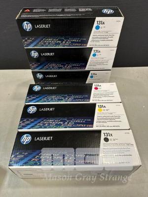1 x HP 131X BLACK TONER CARTRIDGE, CF210X 1 x HP 131A YELLOW TONER CARTRIDGE, CF212A 1 x HP 131A MAGENTA TONER CARTRIDGE, CF213A 3 x HP 131A CYAN TONER CARTRIDGES, CF211A