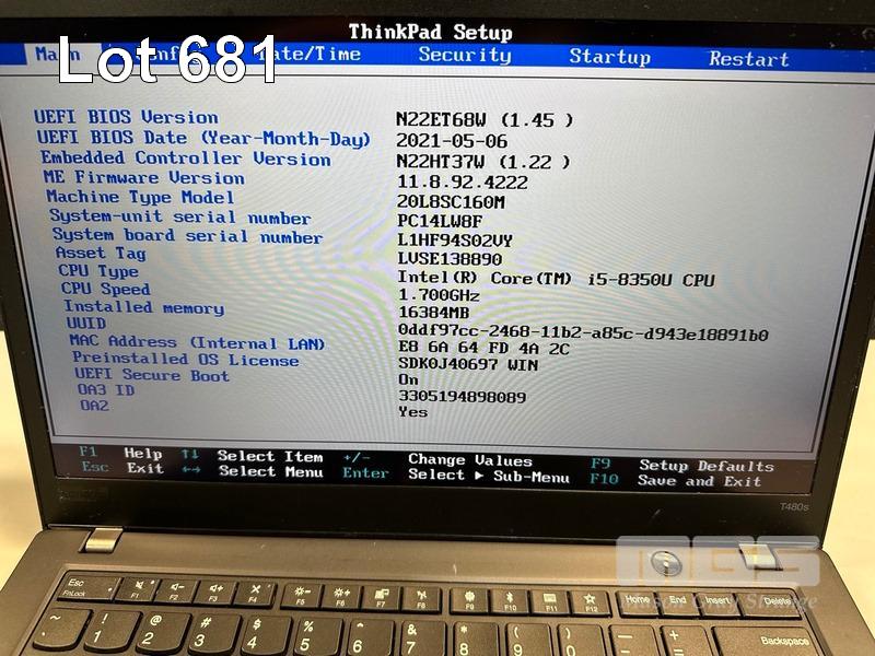 LAPTOP, LENOVO THINKPAD T480s, TYPE 20L8, CORE i5 8350U (8TH GEN) @ 1.7GHz, 16GB DDR4 RAM, 256GB NVMe M.2 SSD, 14" TOUCHSCREEN (1920x1080), INTEL HD VIDEO, Wi-Fi, BLUETOOTH, WINDOWS 11 PRO INSTALLED (NO USB-C POWER SUPPLY) (NOTE: CASE MISSING "THINKPAD" LOGO, CASING WORN, MARKS ON SCREEN) S/N:PC14LW8F