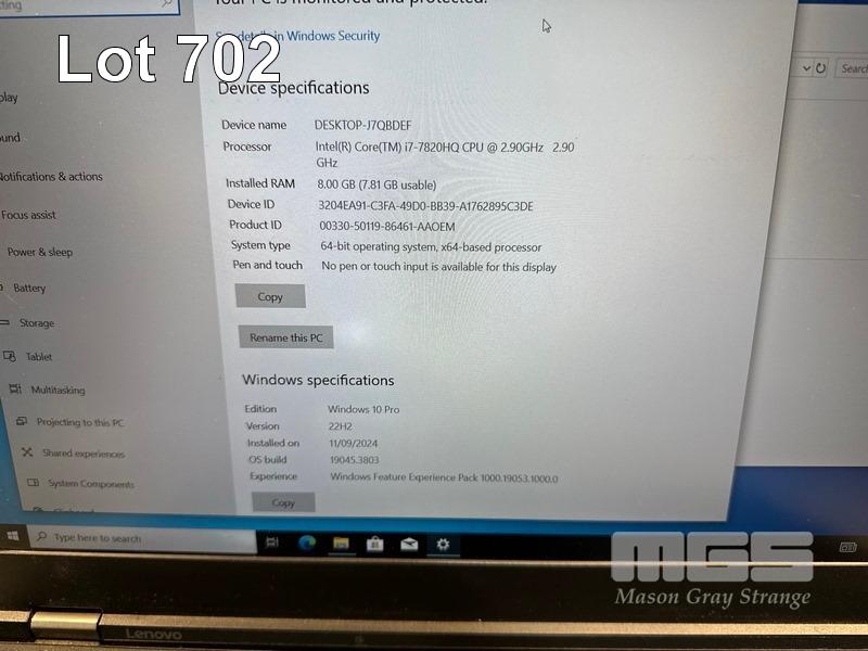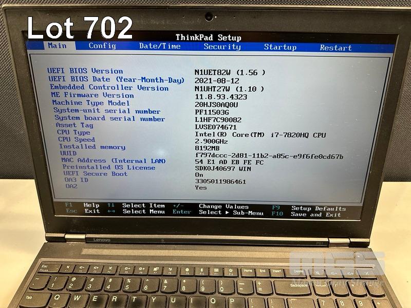 LAPTOP, LENOVO THINKPAD P51 MOBILE WORKSTATION, TYPE 20HJ, CORE i7 7820HQ (7TH GEN) @ 2.9GHz, 8GB DDR4 RAM, 512GB NVMe M.2 SSD, 15.6" WIDESCREEN (1920x1080), 4GB NVIDIA QUADRO M2200 VIDEO, Wi-Fi, BLUETOOTH, WINDOWS 10 PRO INSTALLED (NO POWER SUPPLY) (NOTE: MARKS & SPOT ON SCREEN) S/N:PF11503G