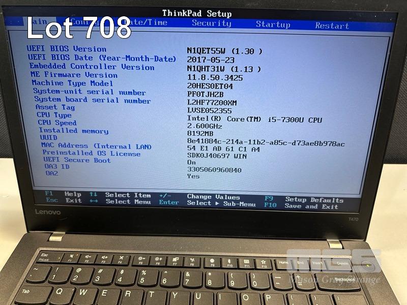 LAPTOP, LENOVO THINKPAD T470, TYPE 20HE, CORE i5 7300U (7TH GEN) @ 2.6GHz, 8GB DDR4 RAM, 256GB NVMe M.2 SSD, 14" WIDESCREEN (1366x768), INTEL HD VIDEO, Wi-Fi, BLUETOOTH, WINDOWS 10 PRO INSTALLED & POWER SUPPLY S/N:PF0TJHZB