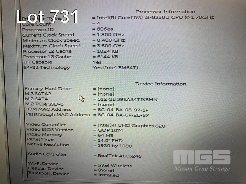 LAPTOP, DELL LATITUDE 5490, CORE i5 8350U (8TH GEN) @ 1.7GHz, 8GB DDR4 RAM, 512GB M.2 SSD, 14" WIDESCREEN (1920x1080), INTEL UHD GRAPHICS 620, Wi-Fi, BLUETOOTH, WINDOWS 11 HOME INSTALLED & POWER SUPPLY (NOTE: MINOR MARKS ON SCREEN) S/N:FH9B1X2