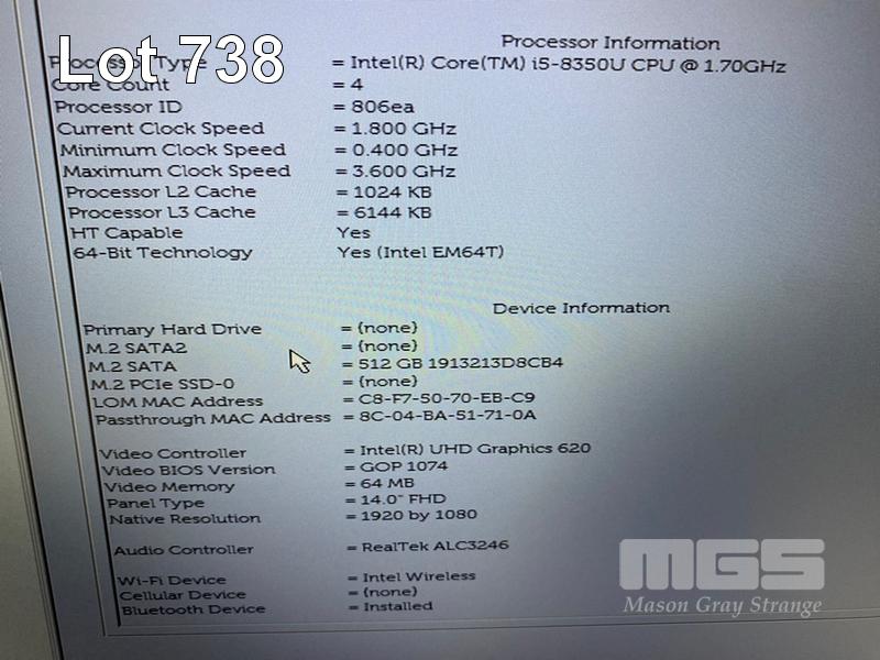 LAPTOP, DELL LATITUDE 5490, CORE i5 8350U (8TH GEN) @ 1.7GHz, 8GB DDR4 RAM, 512GB M.2 SSD, 14" WIDESCREEN (1920x1080), INTEL UHD GRAPHICS 620, Wi-Fi, BLUETOOTH, WINDOWS 11 HOME INSTALLED (NO POWER SUPPLY) (NOTE: DENT IN CASING) S/N:DK8KQV2