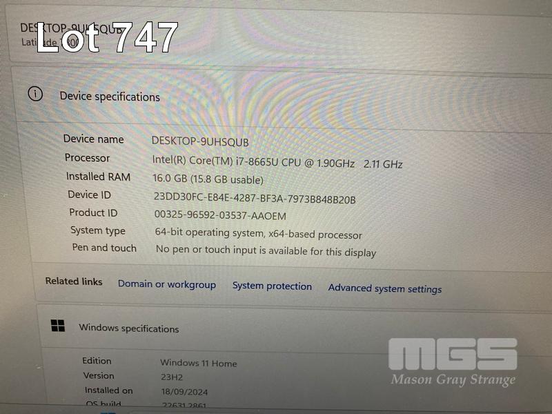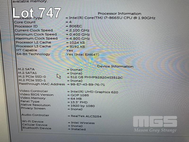 LAPTOP, DELL LATITUDE 7300, CORE i7 8665U (8TH GEN) @ 1.9GHz, 16GB DDR4 RAM, 512GB NVMe M.2 SSD, 13.3" WIDESCREEN (1920x1080), INTEL UHD GRAPHICS 620, Wi-Fi, BLUETOOTH, WINDOWS 11 HOME INSTALLED (NO POWER SUPPLY) (NOTE: RUBBER PAD PART MISSING ON BOTTOM OF LAPTOP, MINOR MARKS ON SCREEN) S/N:8TLR2Z2