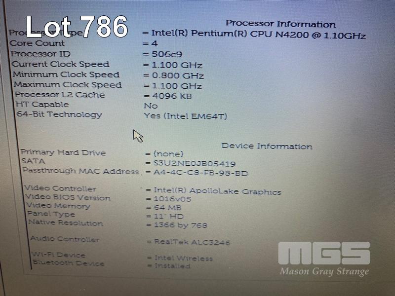 4 x LAPTOPS INC. - DELL LATITUDE 3180, PENTIUM N4200 @ 1.1GHz, 4GB DDR3 RAM, 128GB M.2 SSD, 11.6" WIDESCREEN (1366x768), INTEL HD GRAPHICS, Wi-Fi, BLUETOOTH, WINDOWS 11 PRO EDUCATION INSTALLED (NO POWER SUPPLIES) (NOTE: BATTERIES NOT HOLDING CHARGE) S/N:D7004M2, 63004M2, 3RTZ3M2, 30604M2