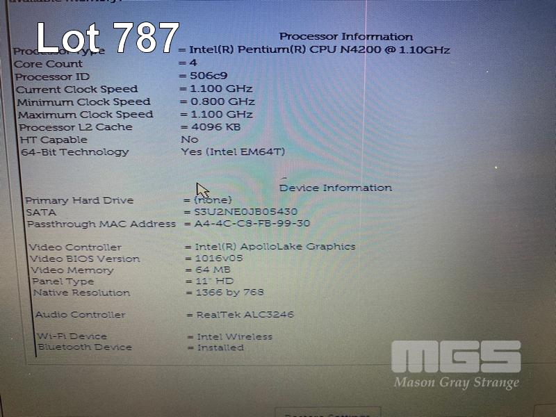 4 x LAPTOPS INC. - DELL LATITUDE 3180, PENTIUM N4200 @ 1.1GHz, 4GB DDR3 RAM, 128GB M.2 SSD, 11.6" WIDESCREEN (1366x768), INTEL HD GRAPHICS, Wi-Fi, BLUETOOTH, WINDOWS 11 PRO EDUCATION INSTALLED (NO POWER SUPPLIES) (NOTE: VARIOUS DAMAGE, SCRATCHES, BATTERIES NOT HOLDING CHARGE) S/N:BV504M2, BPTZ3M2, JWJ04M2, 8PC04M2