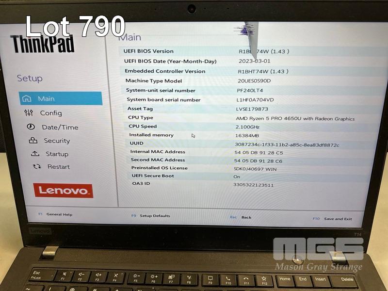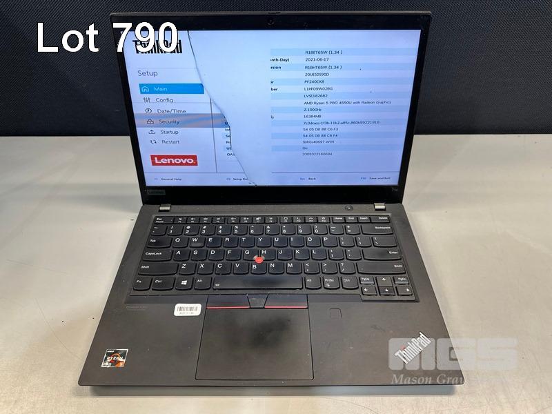 2 x LAPTOPS INC. - LENOVO THINKPAD T14 Gen1, TYPE 20UE, AMD RYZEN 5 PRO 4650U @ 2.1GHz, 16GB DDR4 RAM, 512GB NVMe M.2 SSD, (NO USB-C POWER SUPPLIES) (NOTE: DAMAGED SCREENS & TOUCHPAD FAULT) 1 x LAPTOP INC. - LENOVO THINKPAD T490s, NO HDD (FAULTY, POOR CONDITION) (NO USB-C POWER SUPPLY) S/N:PF240CK8, PF240LT4, PC1B4PQ4