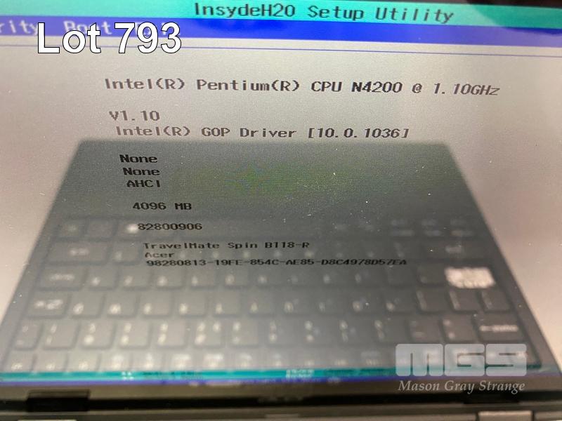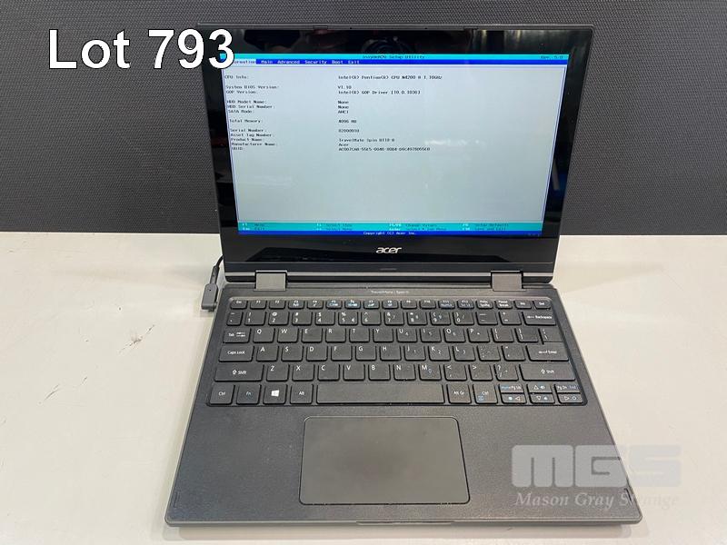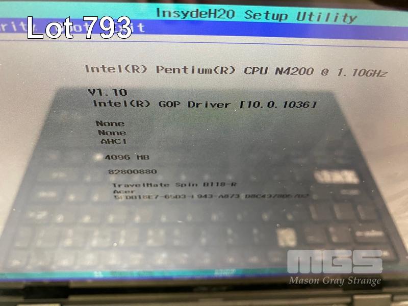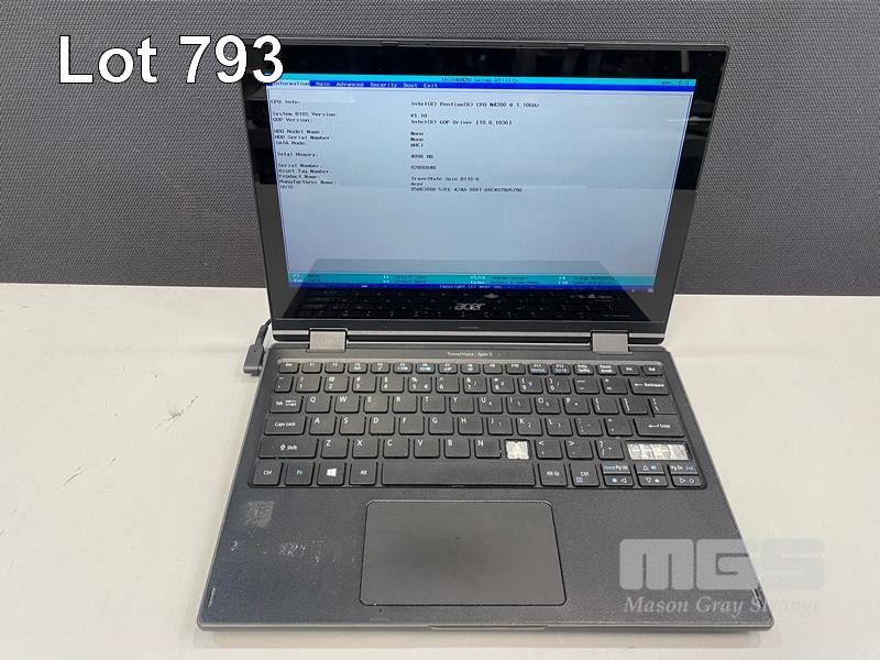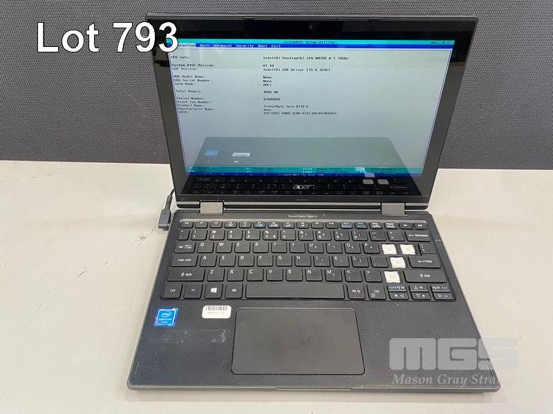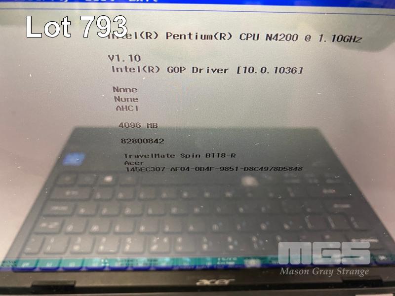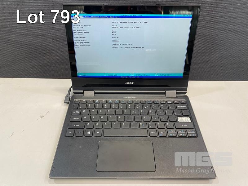 8 x LAPTOPS INC. - ACER TRAVELMATE SPIN B118-R, PENTIUM N4200 @ 1.1GHz, 4GB RAM, NO HDD (NO POWER SUPPLIES) (NOTE: ALL MISSING VARIOUS KEYBOARD KEYS, 1 x WITH DAMAGE) S/N:82800884, 82800842, 82800906, 82800846, 82800880, 82800889, 82800907, 82800910