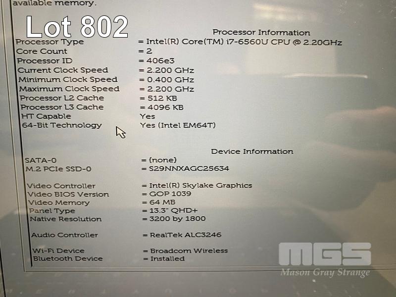 LAPTOP, DELL XPS 13 9350, CORE i7 6560U (6TH GEN) @ 2.2GHz, 8GB DDR3 RAM, 256GB NVMe M.2 SSD, 13.3" TOUCHSCREEN (3200x1800), INTEL HD GRAPHICS 520, Wi-Fi, BLUETOOTH, WINDOWS 10 HOME INSTALLED & POWER SUPPLY S/N:BVLKJ72