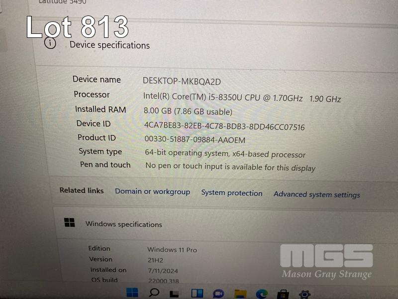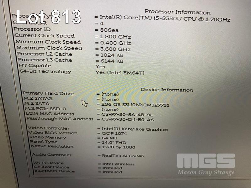 LAPTOP, DELL LATITUDE 5490, CORE i5 8350U (8TH GEN) @ 1.7GHz, 8GB DDR4 RAM, 256GB M.2 SSD, 14" WIDESCREEN (1920x1080), INTEL UHD GRAPHICS 620, Wi-Fi, CELLUAR, BLUETOOTH, WINDOWS 11 PRO INSTALLED (NO POWER SUPPLY) (NOTE: SWOLLEN BATTERY, MARKS ON SCREEN) S/N:FZ65YT2