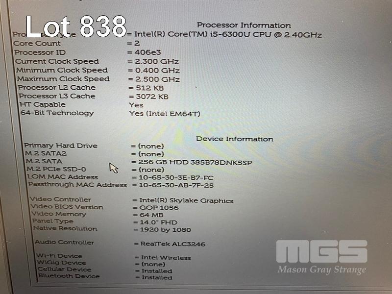 LAPTOP, DELL LATITUDE 5480, CORE i5 6300U (6TH GEN) @ 2.4GHz, 8GB DDR4 RAM, 256GB M.2 SSD, 14" WIDESCREEN (1920x1080), INTEL HD GRAPHICS 520, Wi-Fi, CELLULAR, BLUETOOTH, WINDOWS 10 PRO INSTALLED (NO POWER SUPPLY) (NOTE: MINOR MARKS ON SCREEN) S/N:D09RQN2