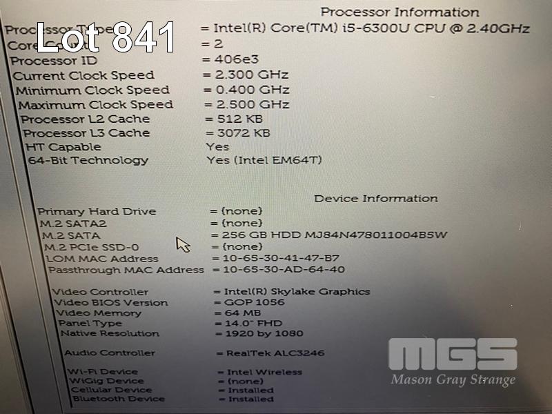 LAPTOP, DELL LATITUDE 5480, CORE i5 6300U (6TH GEN) @ 2.4GHz, 8GB DDR4 RAM, 256GB M.2 SSD, 14" WIDESCREEN (1920x1080), INTEL HD GRAPHICS 520, Wi-Fi, CELLULAR, BLUETOOTH, WINDOWS 10 PRO INSTALLED (NO POWER SUPPLY) (NOTE: SWOLLEN BATTERY, MARKS ON SCREEN) S/N:H6N2RN2