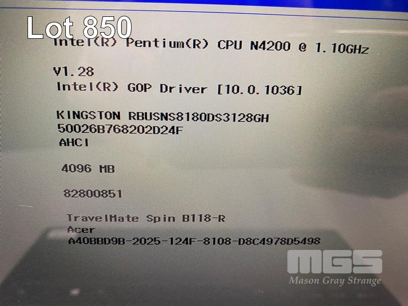 LAPTOP, ACER TRAVELMATE SPIN B118-R, PENTIUM N4200 @ 1.1GHz, 4GB RAM, 128GB M.2 SSD, 11.6" TOUCHSCREEN (1366x768), Wi-Fi, BLUETOOTH, WINDOWS 11 PRO EDUCATION INSTALLED & POWER SUPPLY (NOTE: BUBBLE MARKS ON SCREEN) S/N:82800851