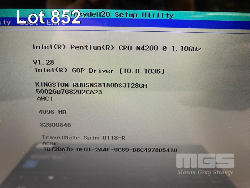 LAPTOP, ACER TRAVELMATE SPIN B118-R, PENTIUM N4200 @ 1.1GHz, 4GB RAM, 128GB M.2 SSD, 11.6" TOUCHSCREEN (1366x768), Wi-Fi, BLUETOOTH, WINDOWS 11 PRO EDUCATION INSTALLED & POWER SUPPLY (NOTE: BUBBLE MARKS ON SCREEN) S/N:82800848