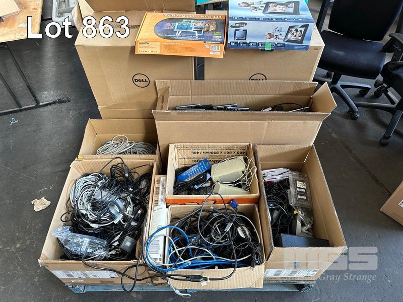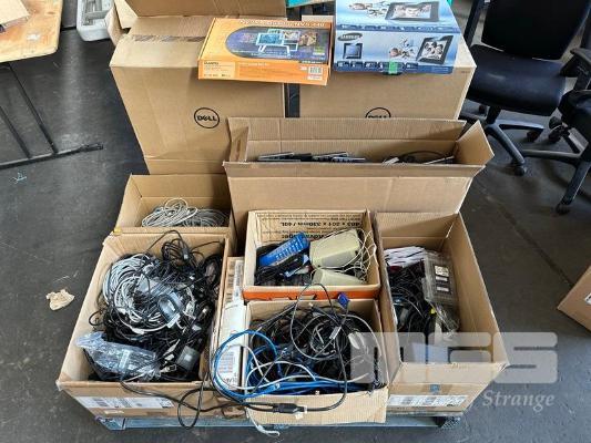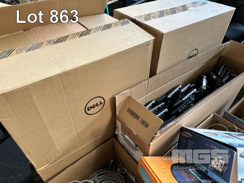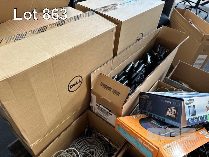 1 x PALLET LOT ASST CABLES, KEYBOARDS, MONITOR SOUNDBARS (AC511), USB CABLES, 4 x DELL MONITOR STANDS (0VV79K)