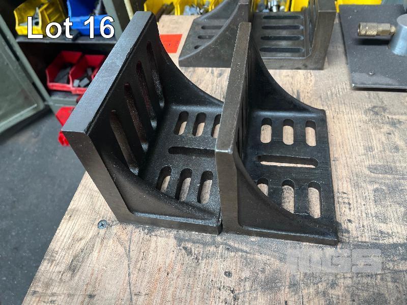 2 x CAST IRON ANGLE PLATES, SLOTTED,