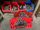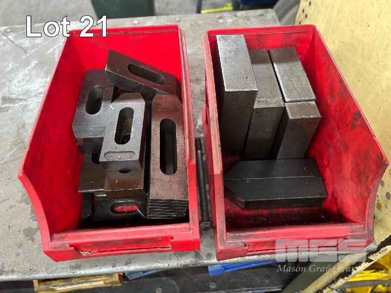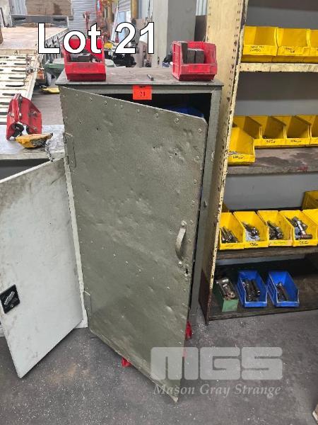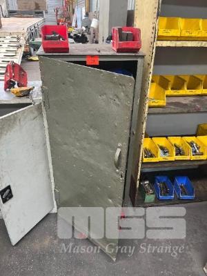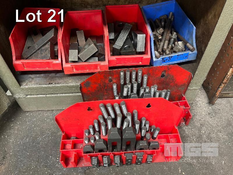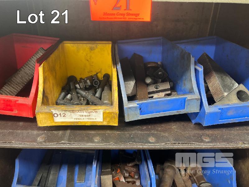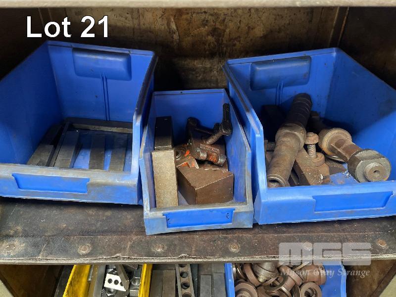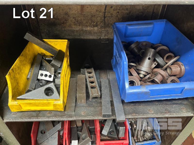 STEEL STOCK CUPBOARD, 1350 x 600 x 460mm, 4 TIER & CONTENTS INCLUDING LARGE QUANTITY MACHINE CLAMPS & ACCESSORIES, TEE BOLTS, ETC