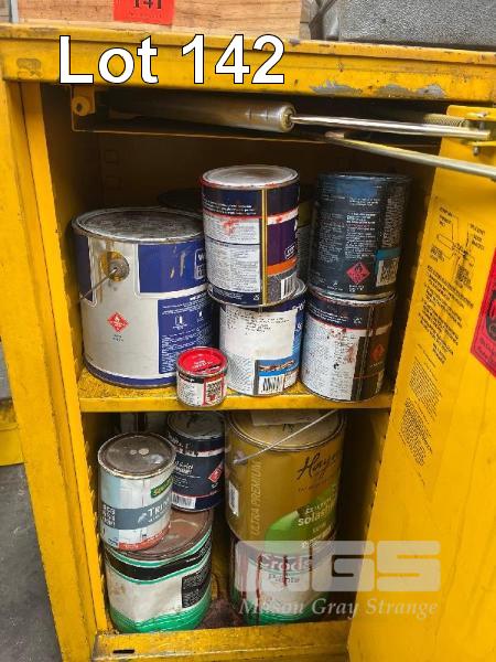 SMALL FIREPROOF CABINET, 900 x 460 x 500m & CONTENTS ASSORTED ENAMEL PAINTS