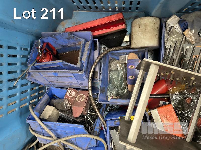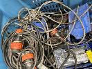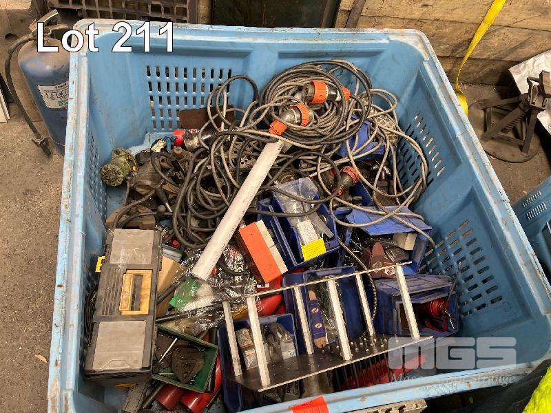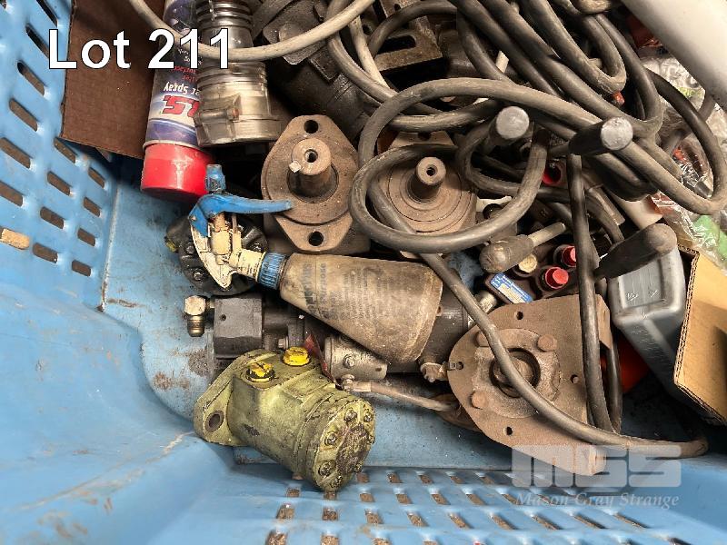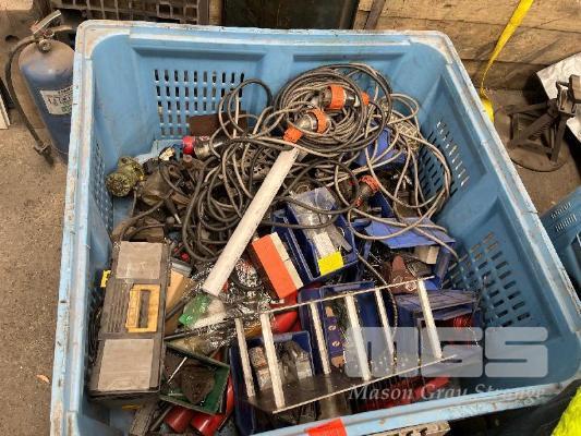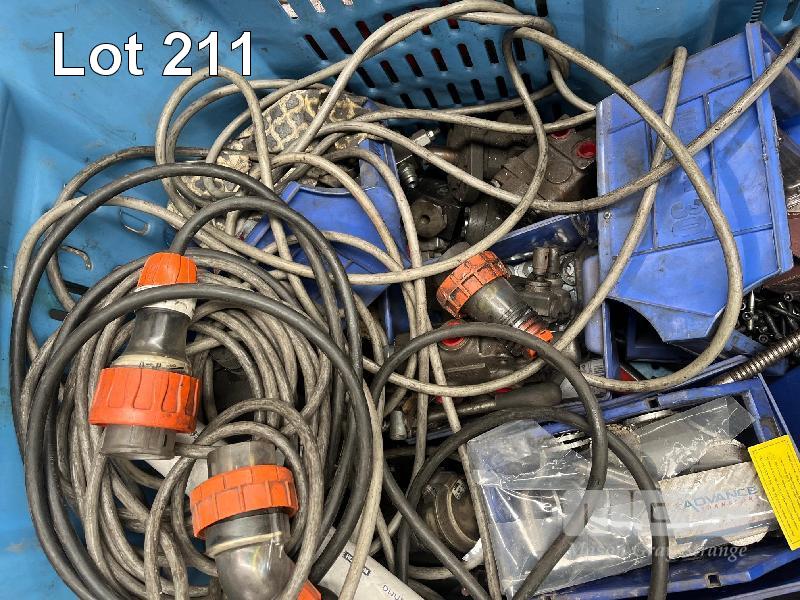 PLASTIC CRATE & CONTENTS, 415V LEADS, HYDRAULIC PUMPS & ASSORTED HARDWARE