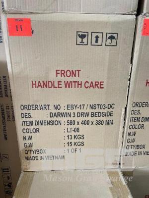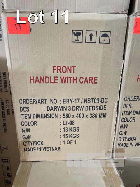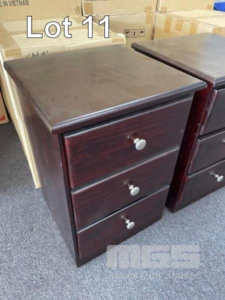 2 x PAIR BEDSIDE TABLES, 3 DRAWER, DARK STAIN