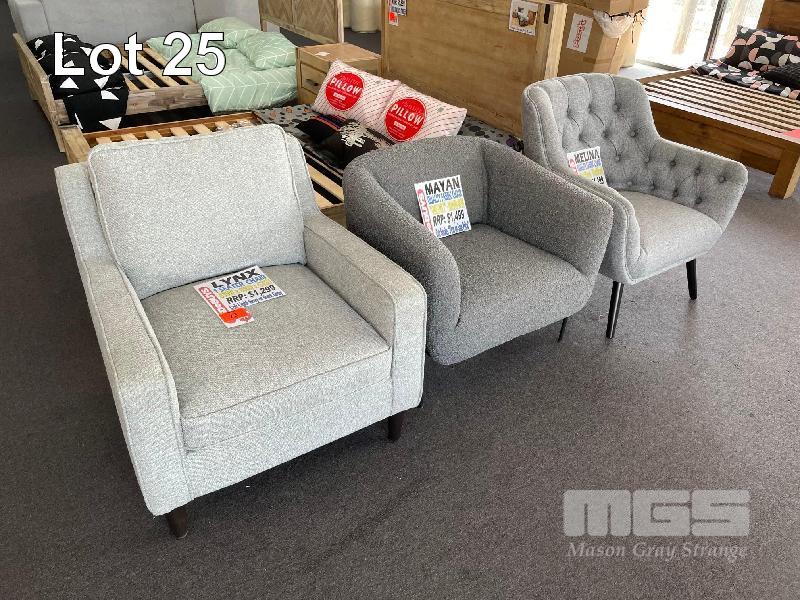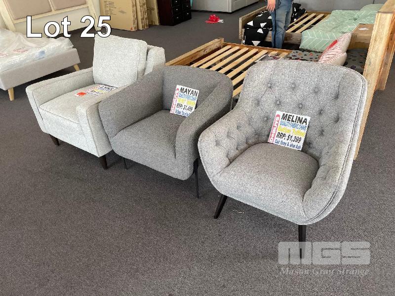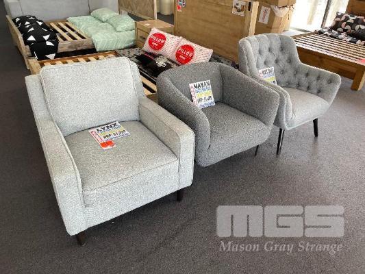 3 x ASSORTED SINGLE ARM CHAIRS, GREY FABRIC