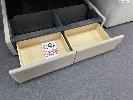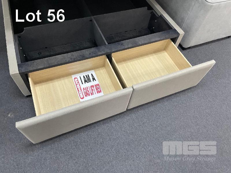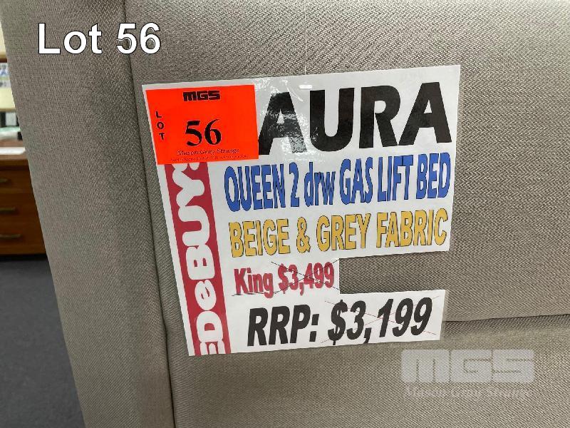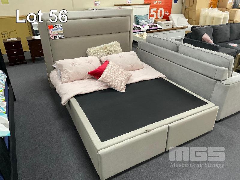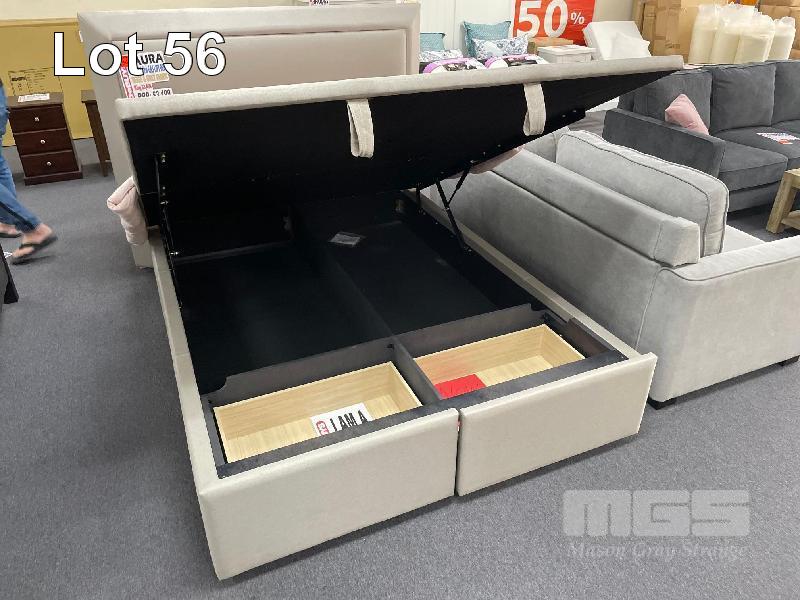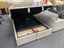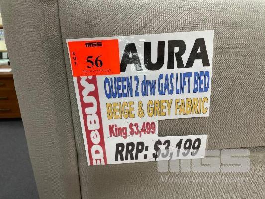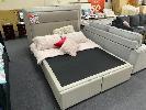 LAURA QUEEN BED, 2 DRAWER BASE WITH GAS LIFT TOP, BEIGE FABRIC