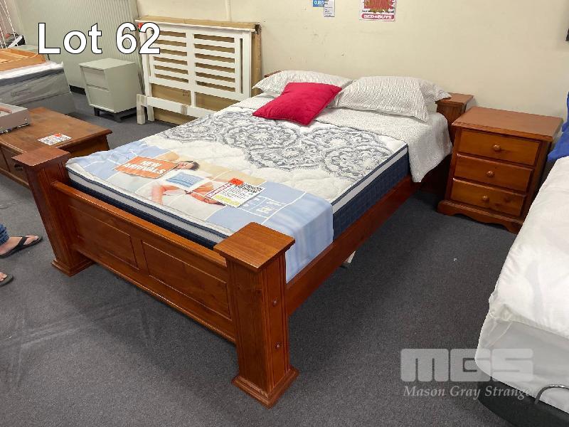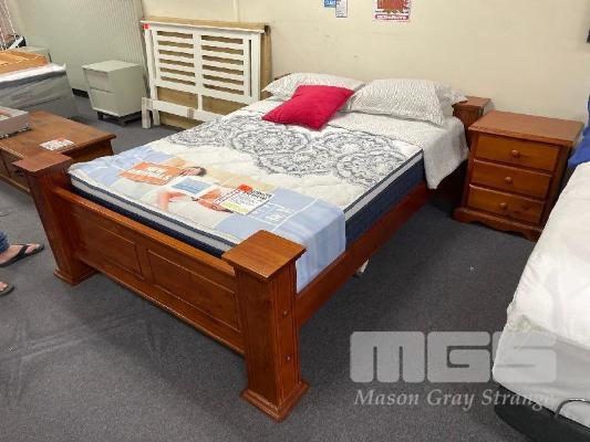 EDEN QUEEN BED, NZ PINE, 4 POST, WESTMINSTER MEDIUM QUEEN MATTRESS & 1 x BEDSIDE TABLE