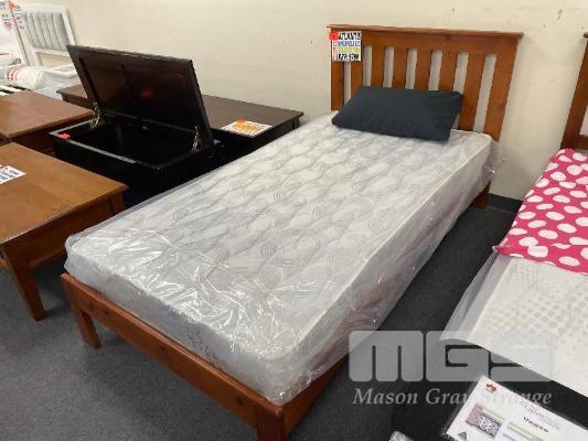 KING SINGLE BED FRAME, NZ PINE & MATTRESS