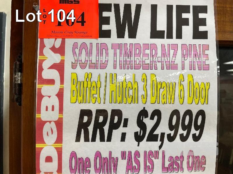 NEW LIFE BUFFET & HUTCH, 3 DRAWER, NZ PINE